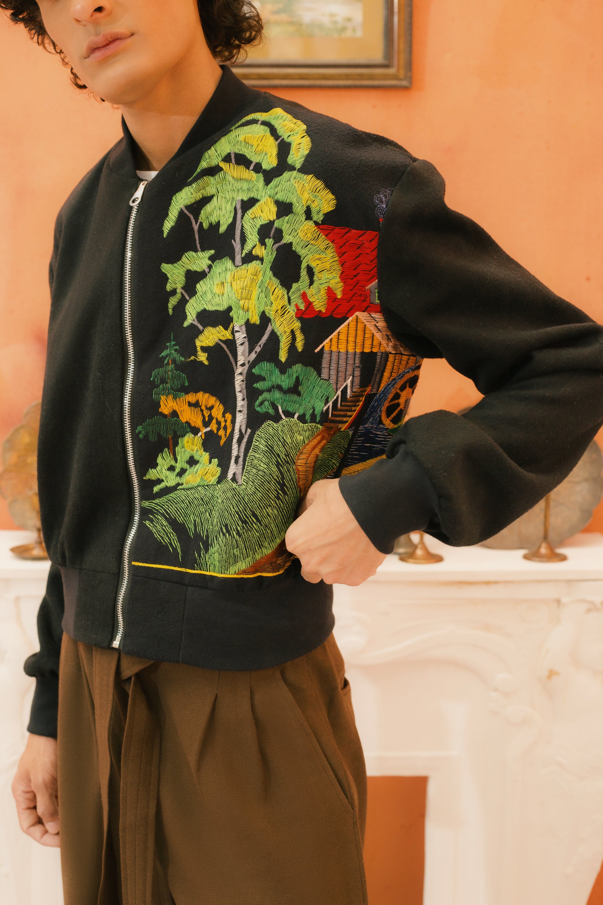 Made with love, this jacket features intricate and skillful embroidery, bringing a scenic design that tells a story with every stitch.