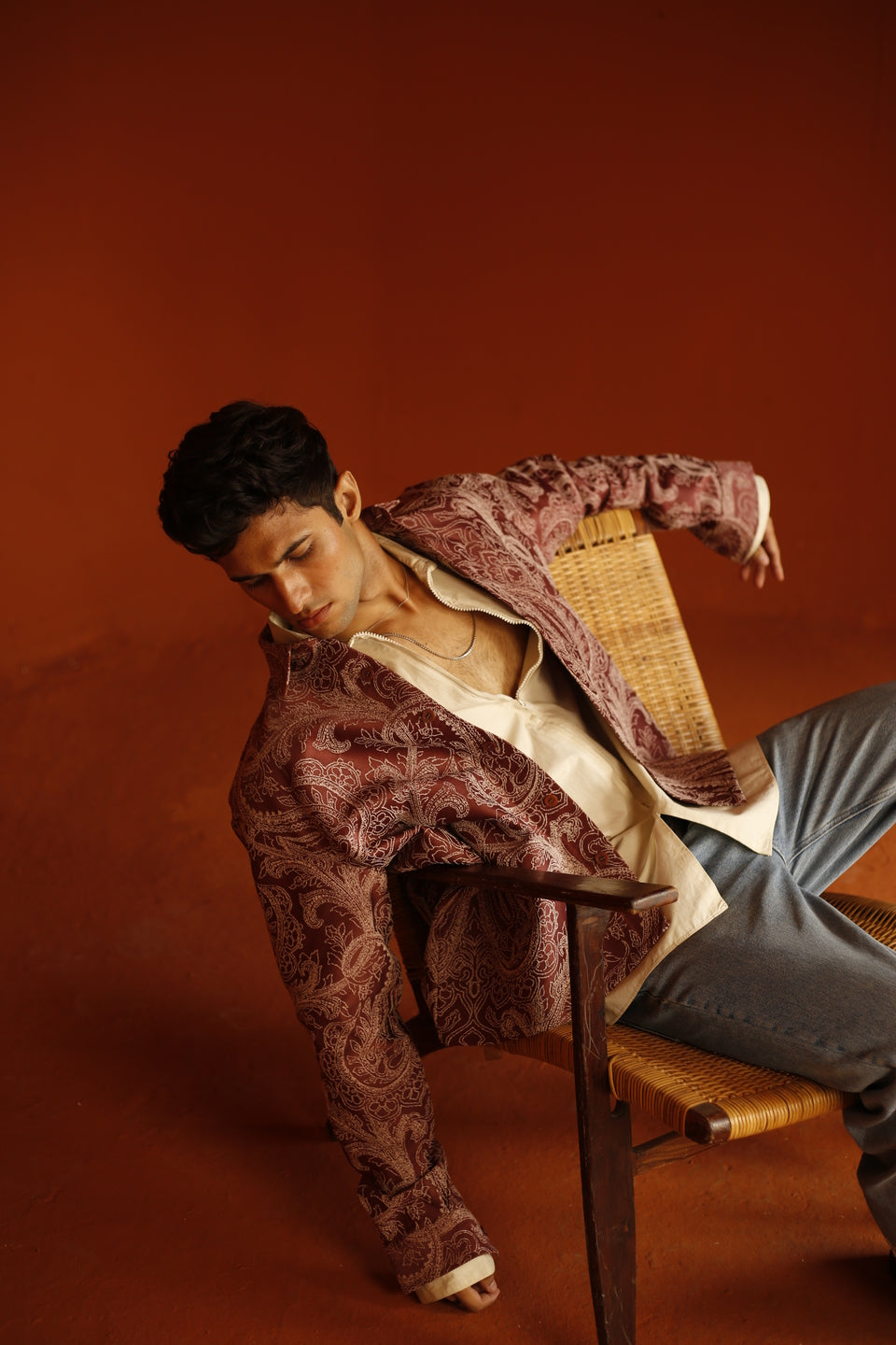 Classic collar meets heritage, paisley motifs reimagined for today, where heritage threads meet modern ease.