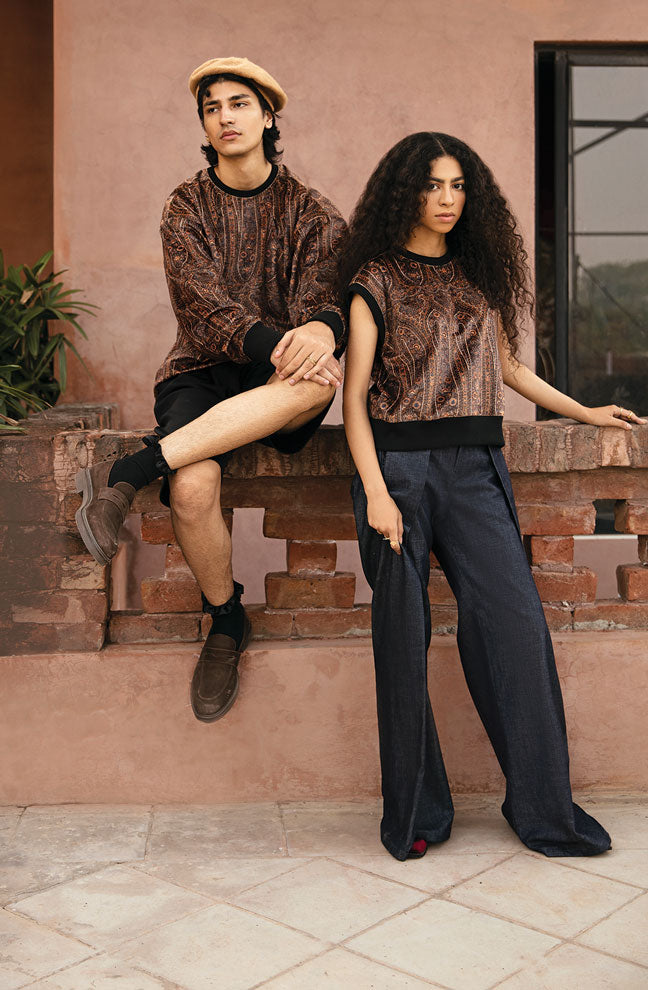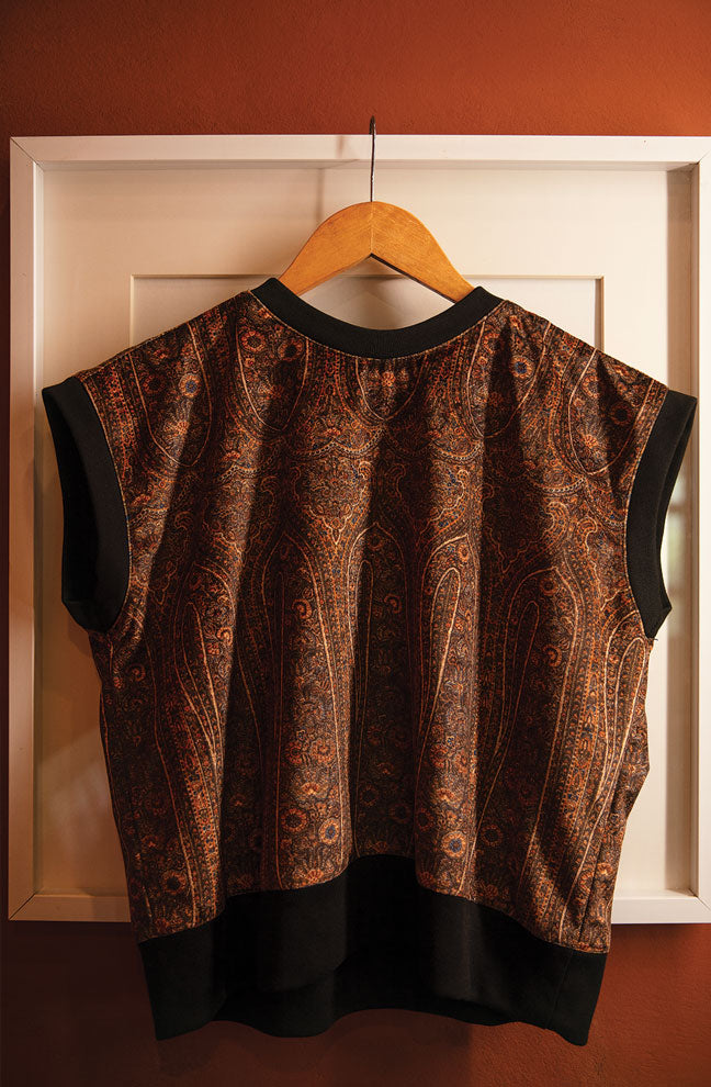 This paisley inspired print can be dressed up or dressed down. Wear yours with our matching velvet pants to wear separately to create your desired look.