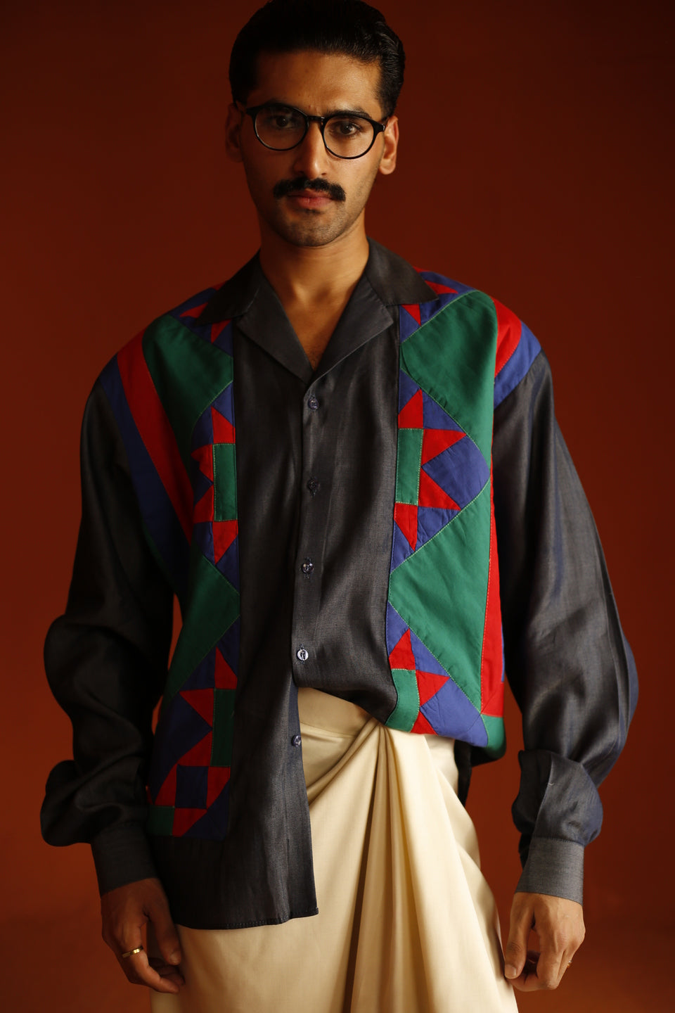 Crafted from contrasting hues, this patchwork shirt blends artful design with effortless style.